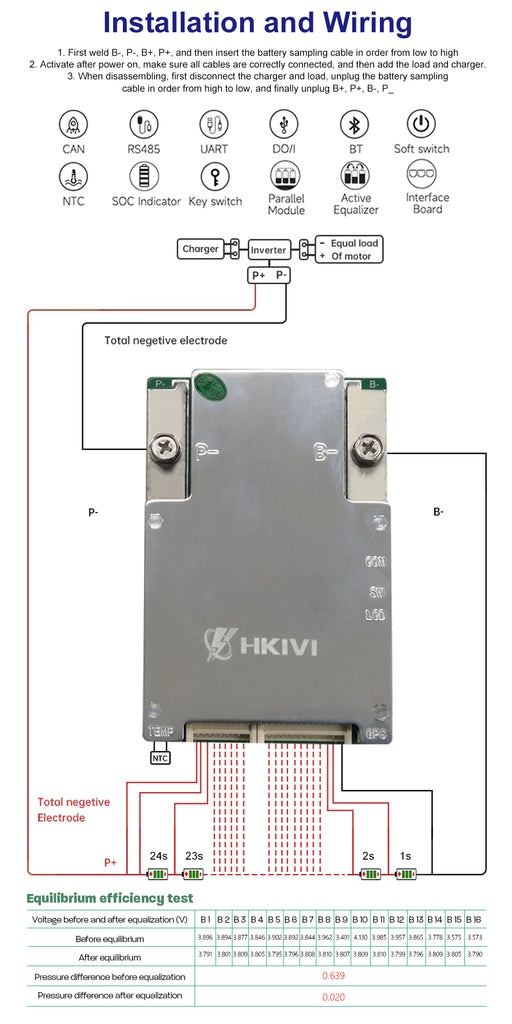 Hkivi BMS 3s-24s Smart BMS LiFePO4 12.8V 72V 40A-300A